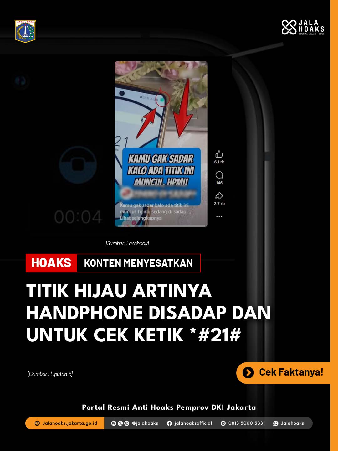 [HOAKS] - TITIK HIJAU ARTINYA HANDPHONE DISADAP DAN UNTUK CEK KETIK *#21#