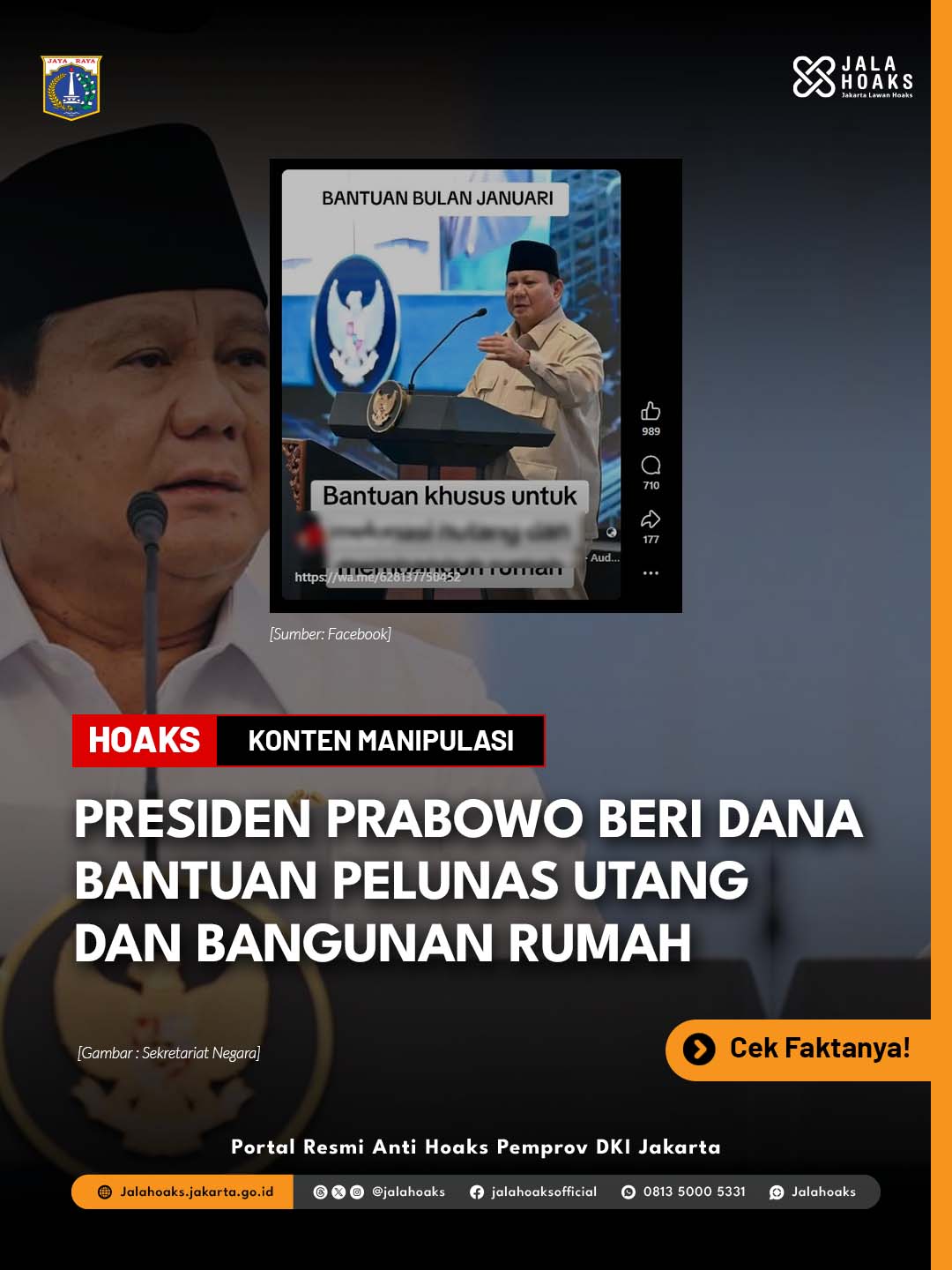 [HOAKS] - PRESIDEN PRABOWO BERI DANA BANTUAN PELUNAS UTANG DAN BANGUNAN RUMAH