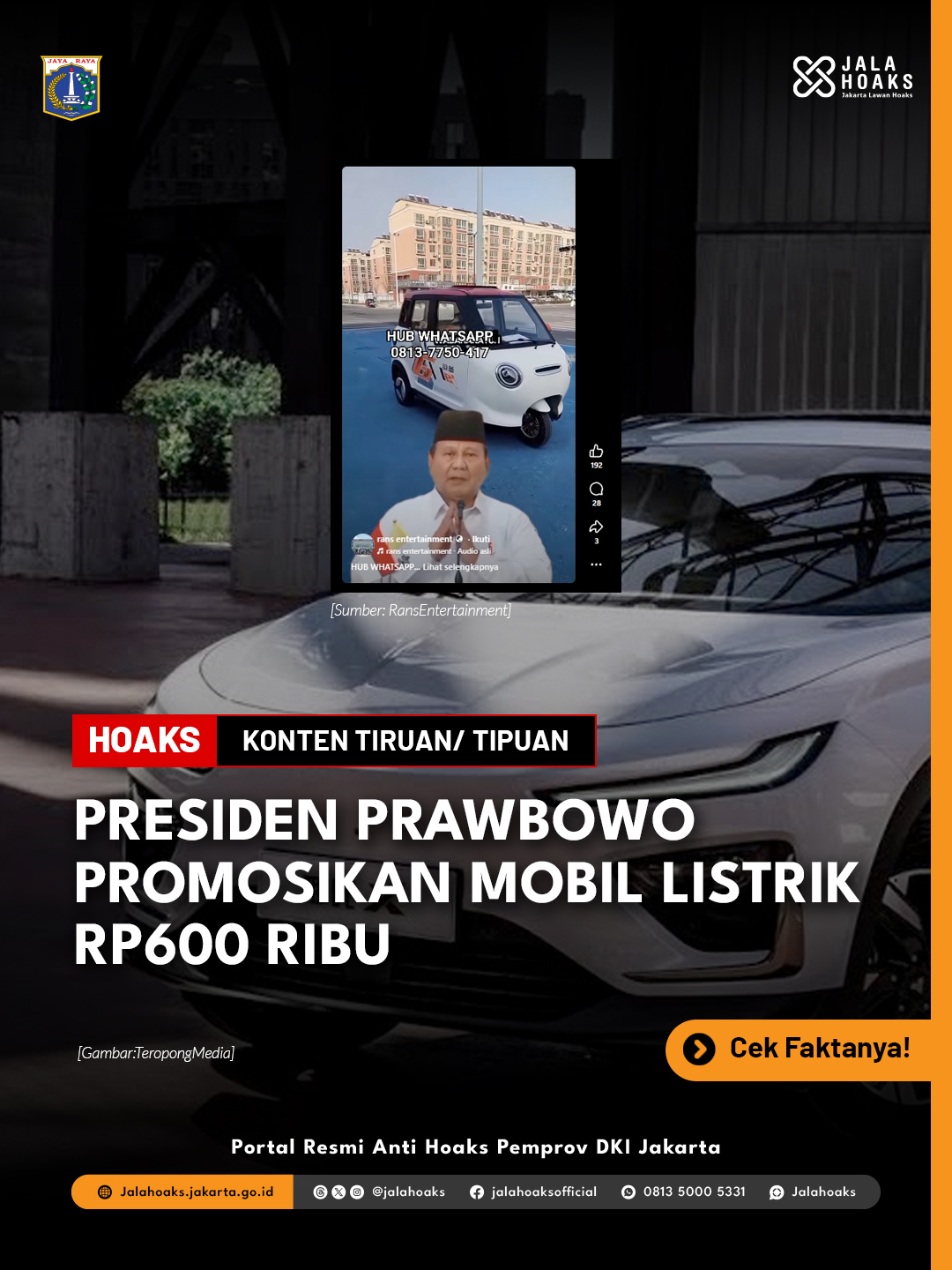 [HOAKS] - PRESIDEN PRABOWO PROMOSIKAN MOBIL LISTRIK SEHARGA RP600 RIBU