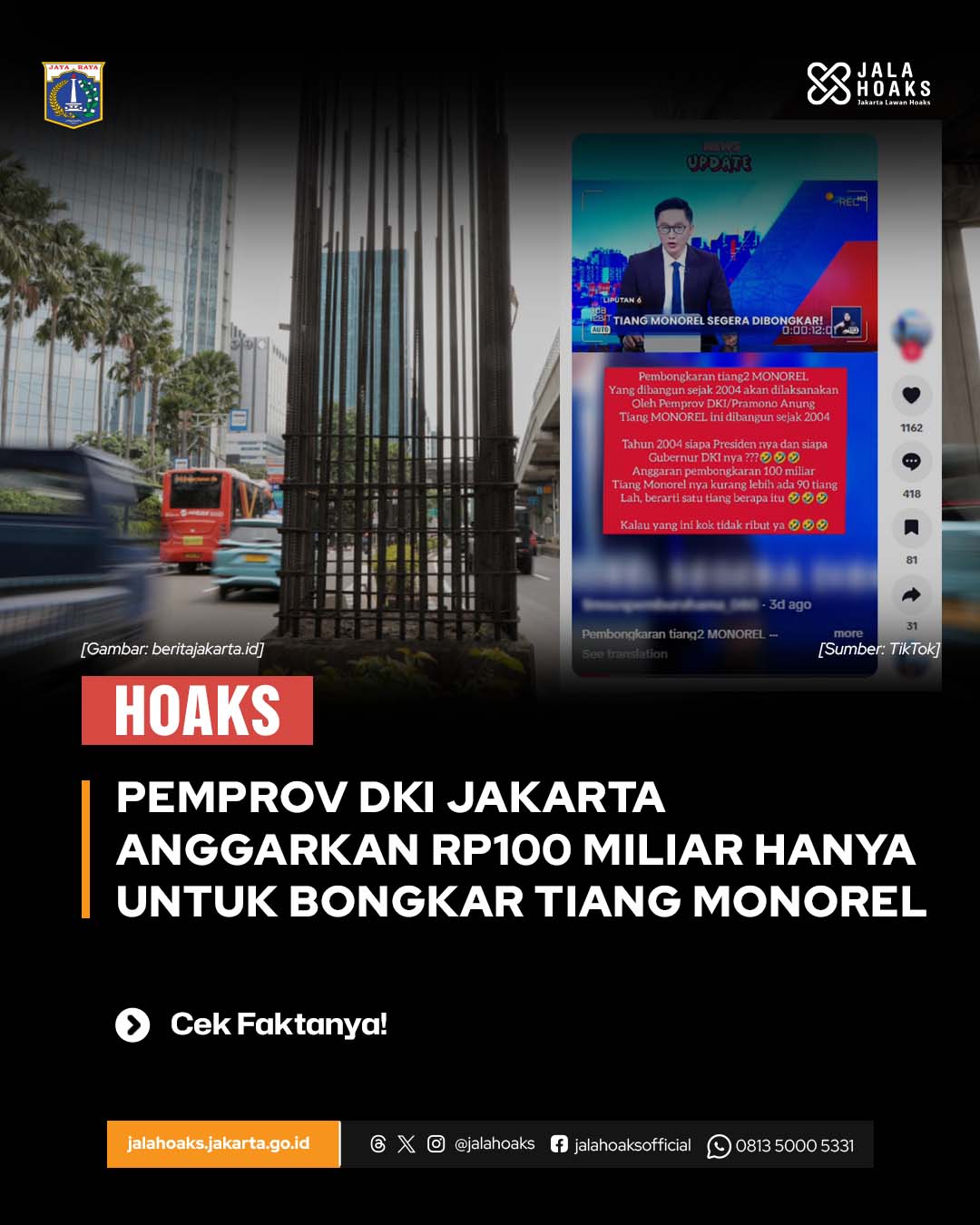 [HOAKS] - PEMPROV DKI JAKARTA ANGGARKAN RP100 MILIAR HANYA UNTUK BONGKAR TIANG MONOREL