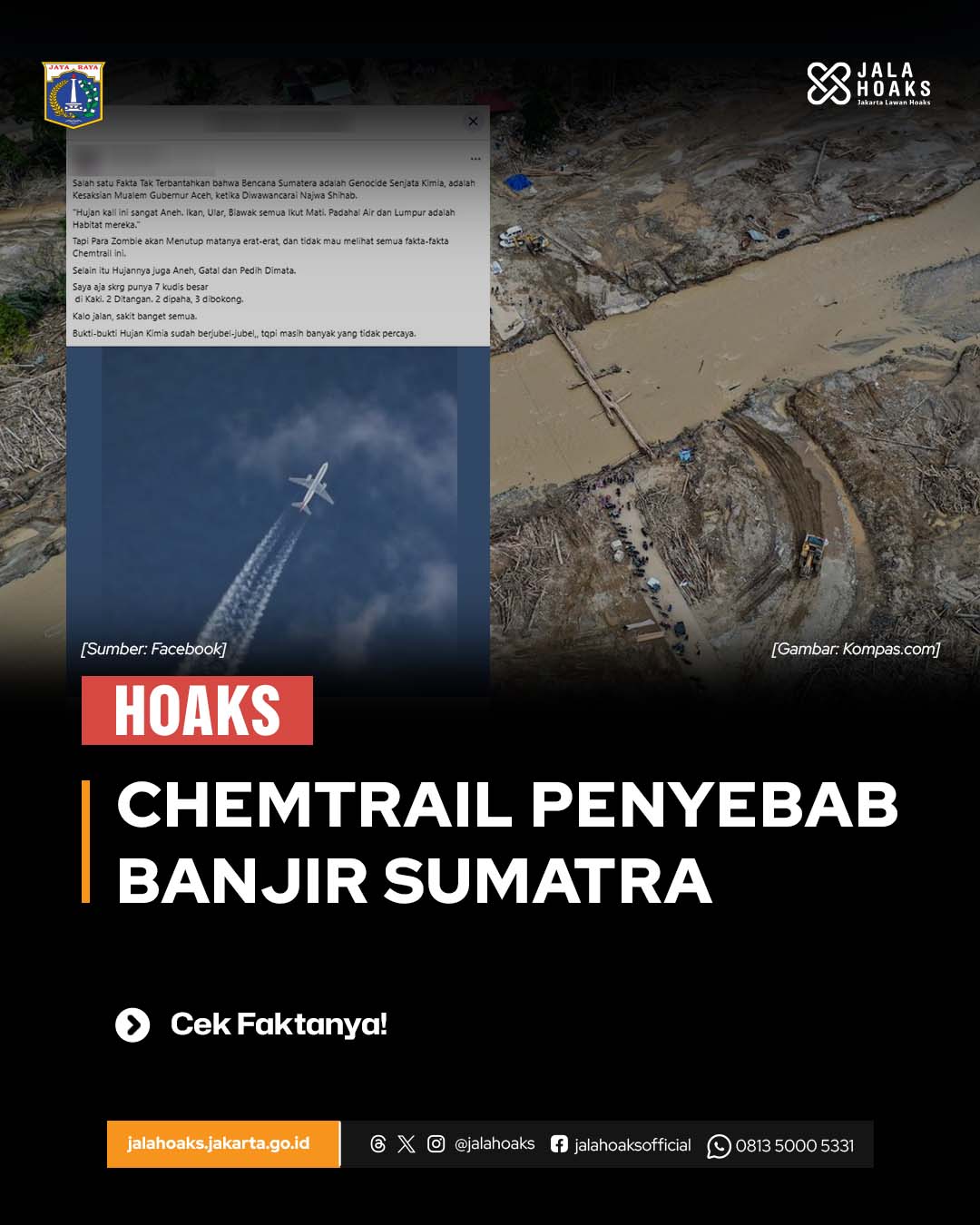 Beredar postingan di Facebook yang menyebut chemtrail menjadi penyebab banjir di Sumatra. ...