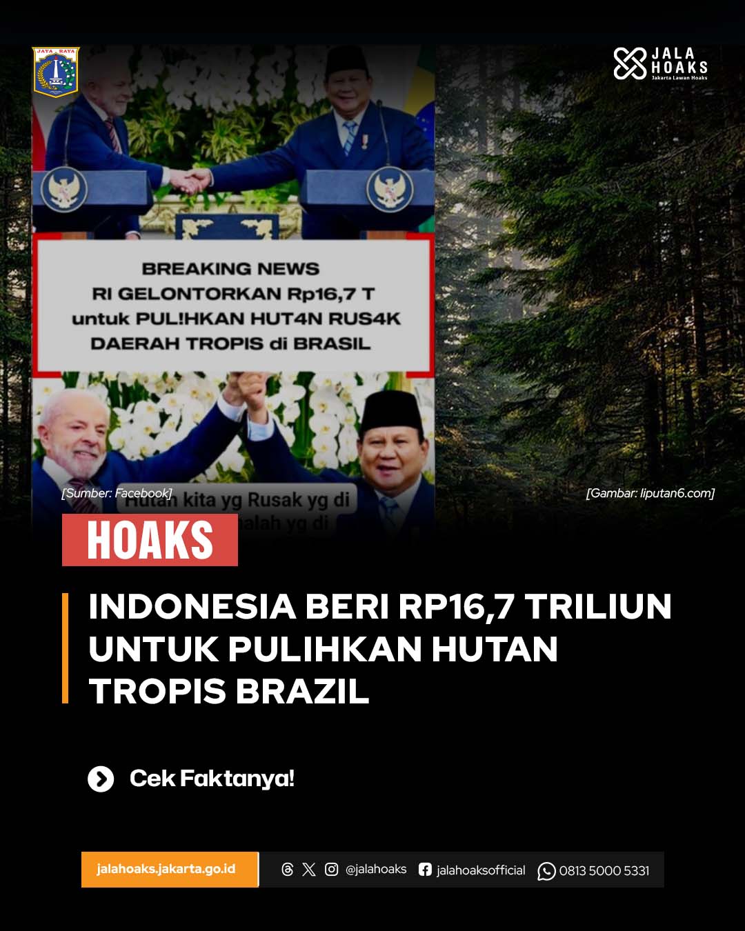 [HOAKS] - INDONESIA BERI RP16,7 TRILIUN UNTUK PULIHKAN HUTAN TROPIS BRAZIL