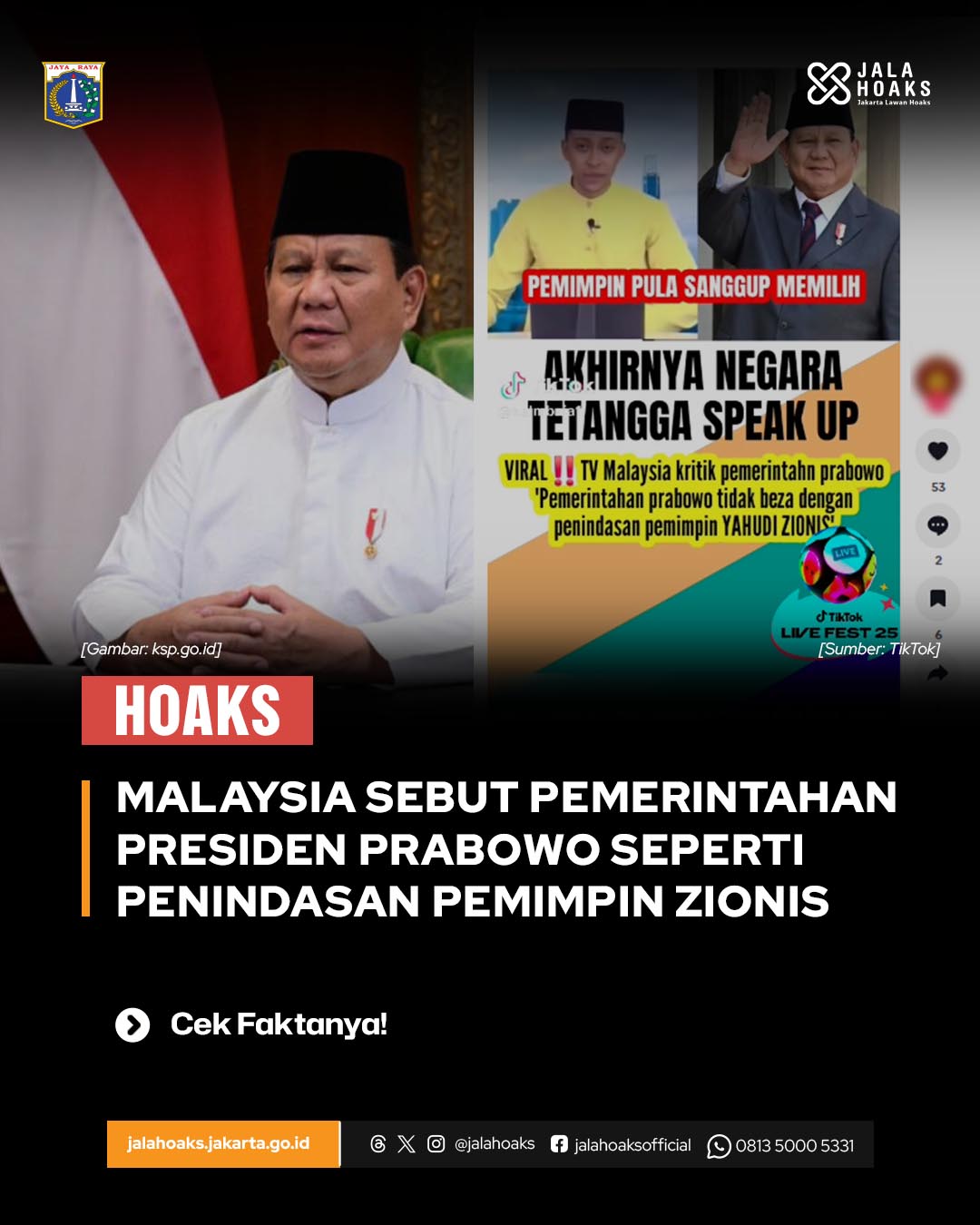 [HOAKS] - MALAYSIA SEBUT PEMERINTAHAN PRESIDEN PRABOWO SEPERTI PENINDASAN PEMIMPIN ZIONIS