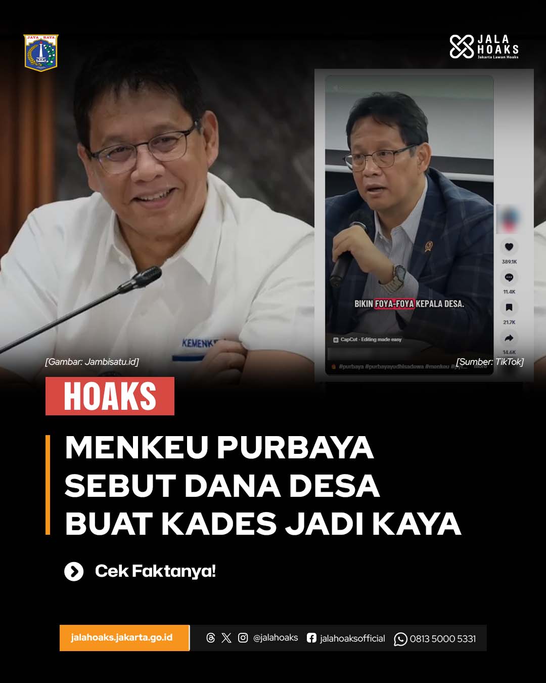 [HOAKS] - MENKEU PURBAYA SEBUT DANA DESA BUAT KADES JADI KAYA