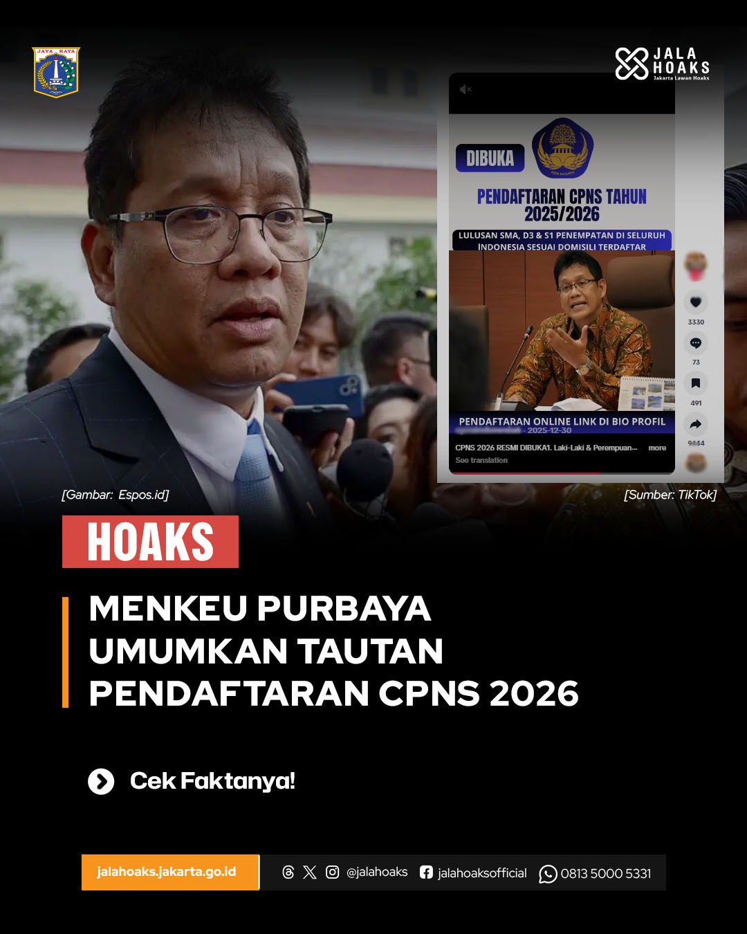 [HOAKS] - MENKEU PURBAYA UMUMKAN TAUTAN PENDAFTARAN CPNS 2026