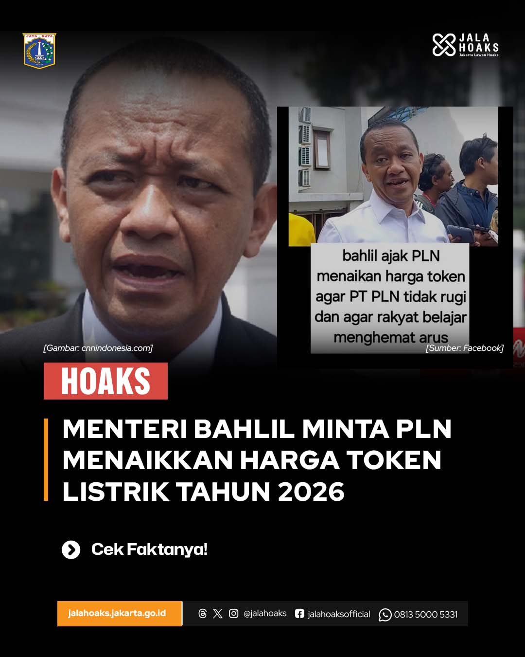 [HOAKS] - MENTERI BAHLIL MINTA PLN MENAIKKAN HARGA TOKEN LISTRIK 2026
