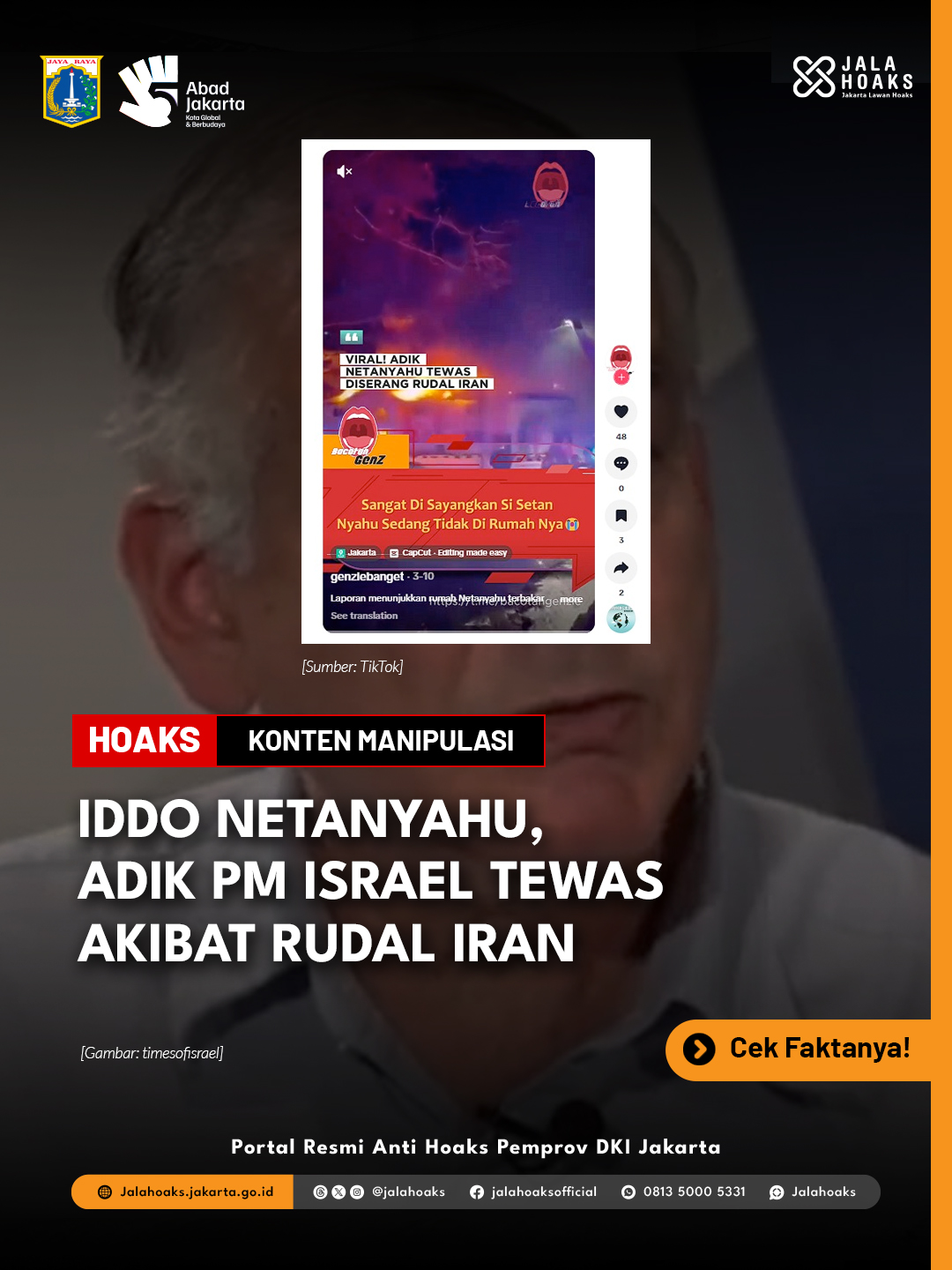 [HOAKS] - IDDO NETANYAHU, ADIK PM ISRAEL TEWAS DISERANG RUDAL IRAN