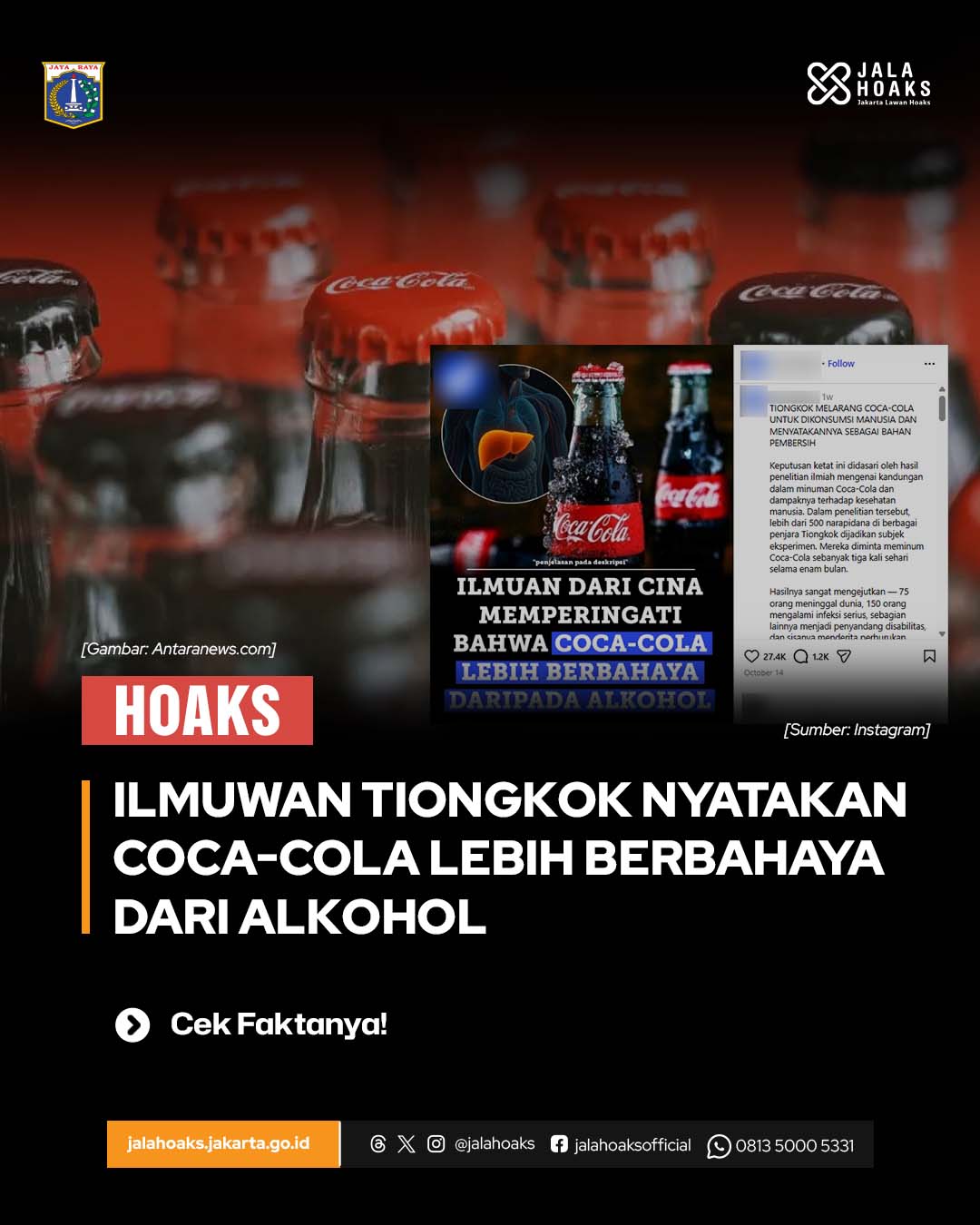 [HOAKS] - ILMUWAN TIONGKOK NYATAKAN COCA-COLA LEBIH BERBAHAYA DARI ALKOHOL