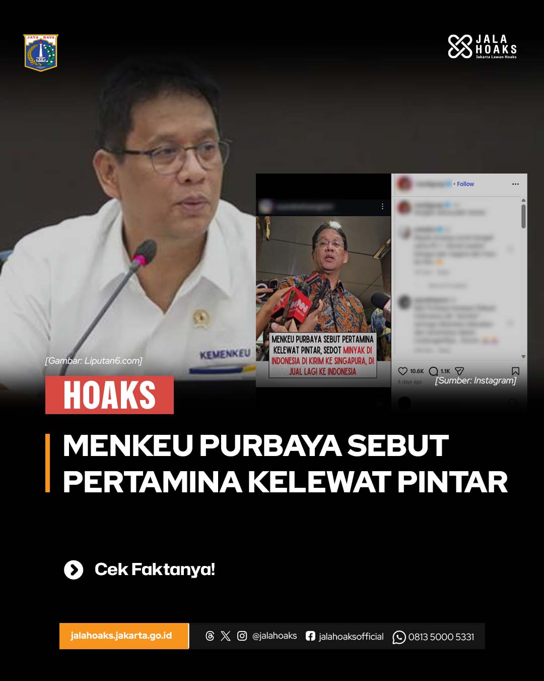 [HOAKS] - MENKEU PURBAYA SEBUT PERTAMINA KELEWAT PINTAR