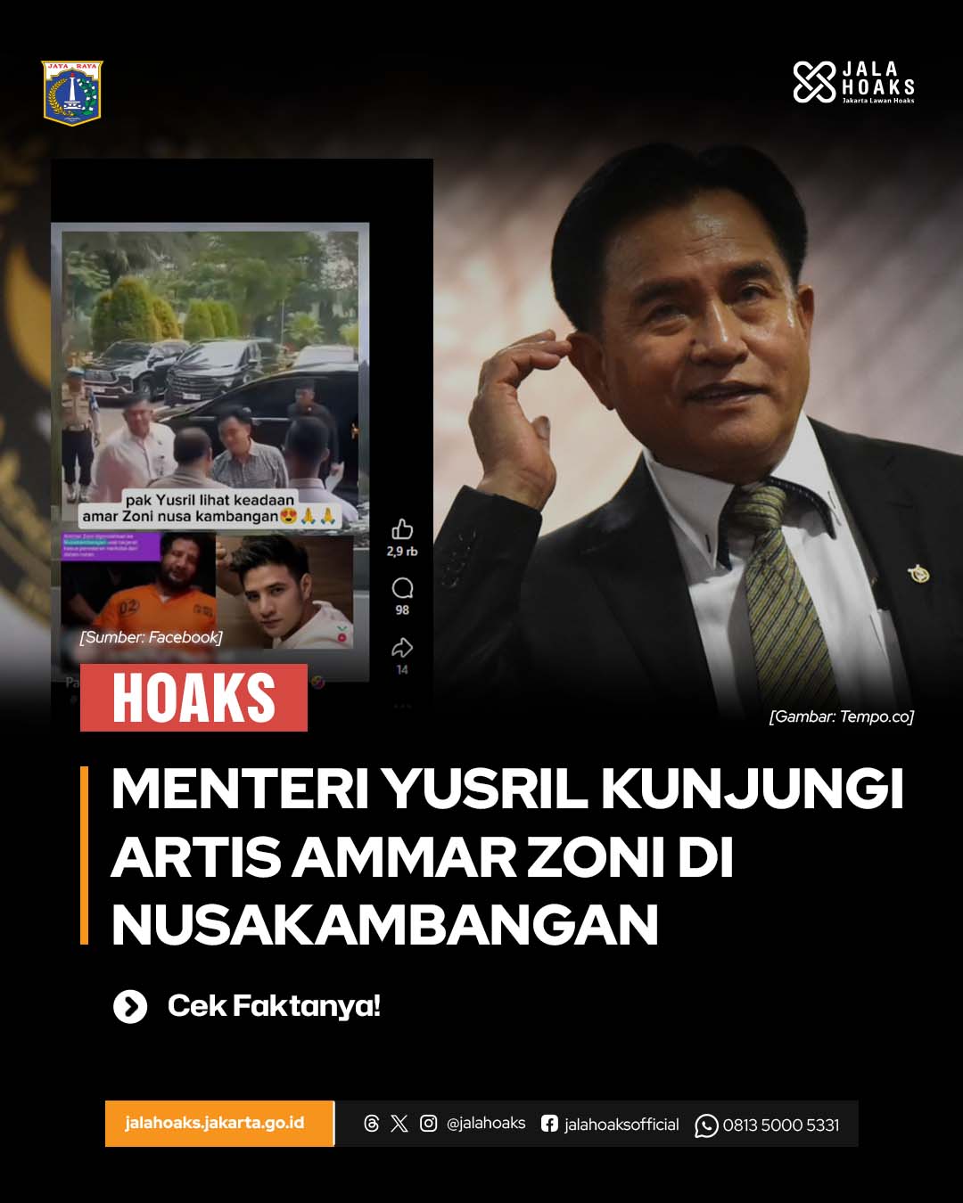[HOAKS] - MENTERI YUSRIL KUNJUNGI ARTIS AMMAR ZONI DI NUSAKAMBANGAN