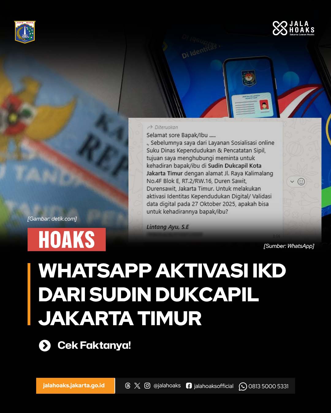 [HOAKS] - WHATSAPP AKTIVASI IKD DARI SUDIN DUKCAPIL JAKARTA TIMUR