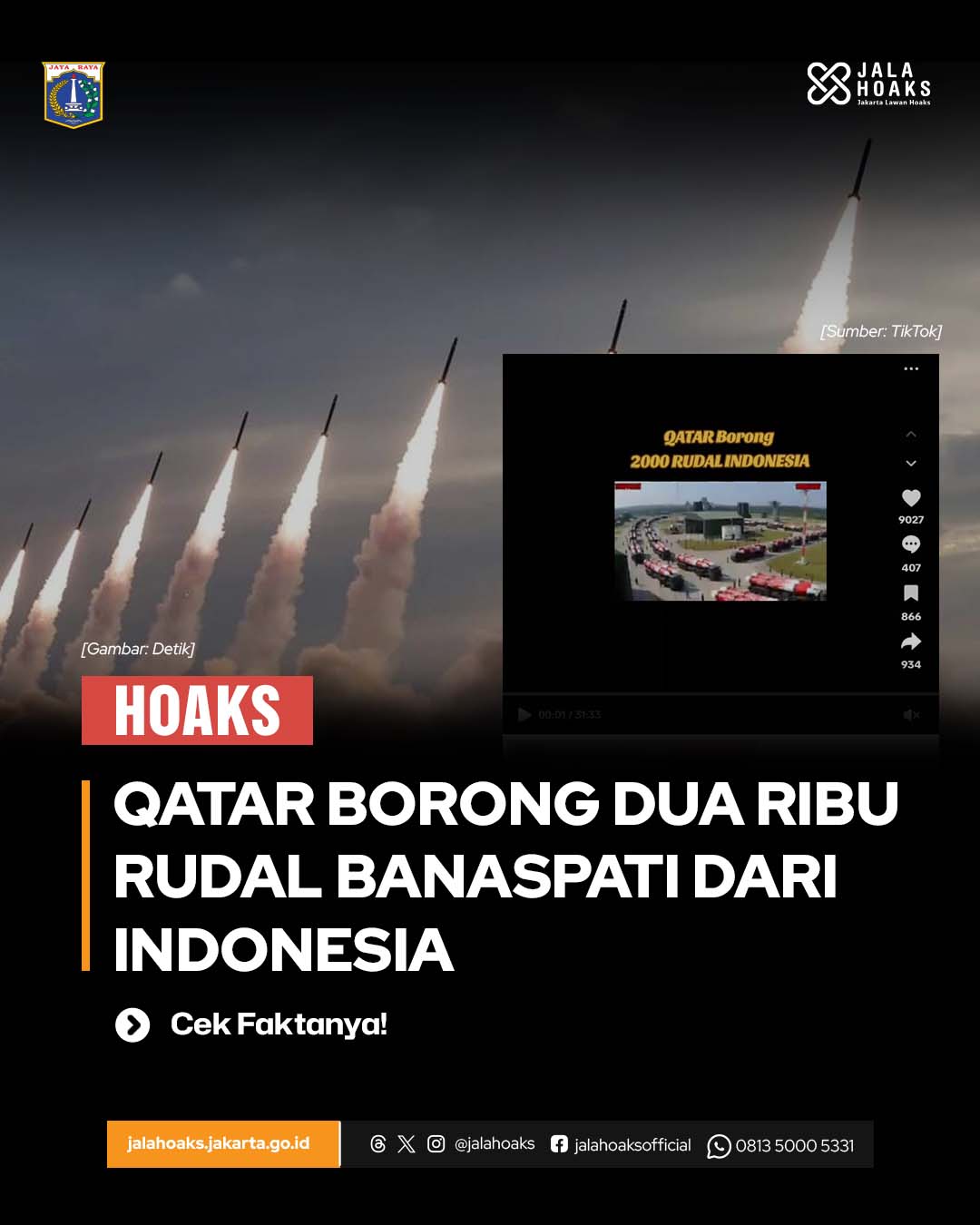 Beredar video di TikTok yang menyatakan bahwa negara Qatar borong dua ribu Rudal Banaspati dari Indonesia. ...