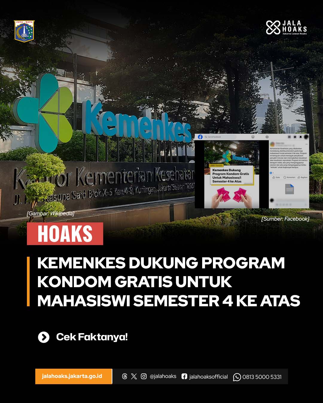 [HOAKS] - KEMENKES DUKUNG PROGRAM KONDOM GRATIS UNTUK MAHASISWI SEMESTER 4 KE ATAS