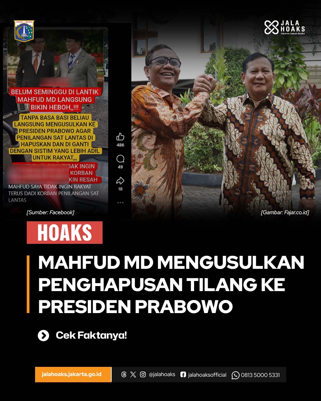 [HOAKS] - MAHFUD MD MENGUSULKAN PENGHAPUSAN TILANG KE PRESIDEN PRABOWO