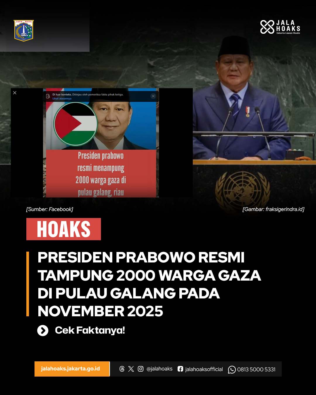 [HOAKS] - PRESIDEN PRABOWO RESMI TAMPUNG 2000 WARGA GAZA DI PULAU GALANG PADA NOVEMBER 2025