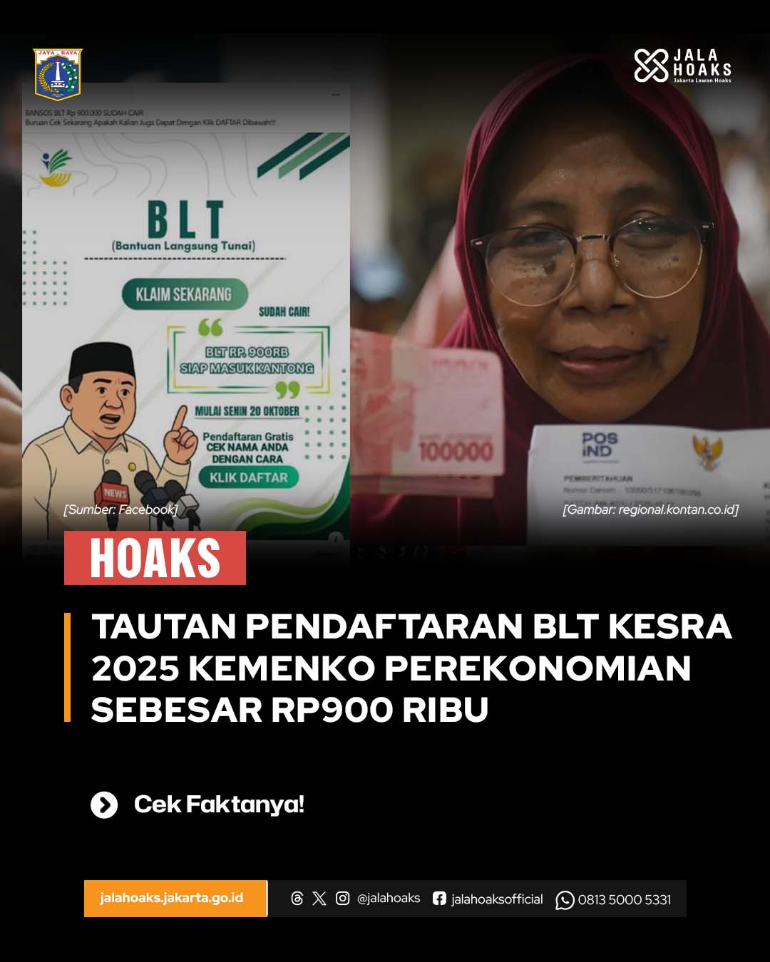 [HOAKS] - TAUTAN PENDAFTARAN BLT KESRA 2025 KEMENKO PEREKONOMIAN SEBESAR RP900 RIBU