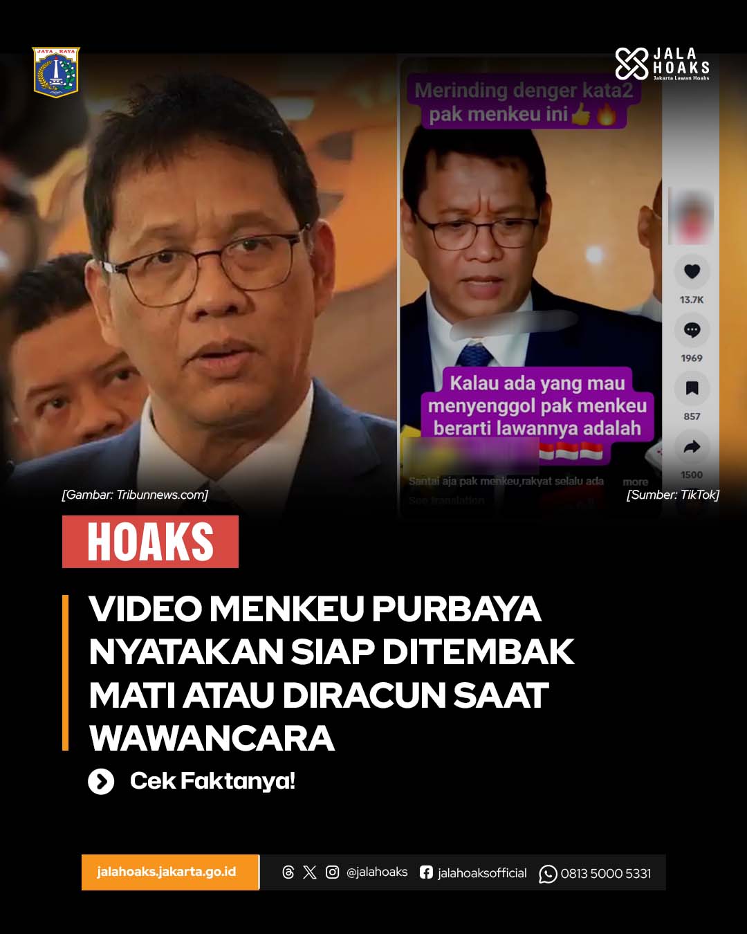 [HOAKS] - VIDEO MENKEU PURBAYA NYATAKAN SIAP DITEMBAK MATI ATAU DIRACUN SAAT WAWANCARA